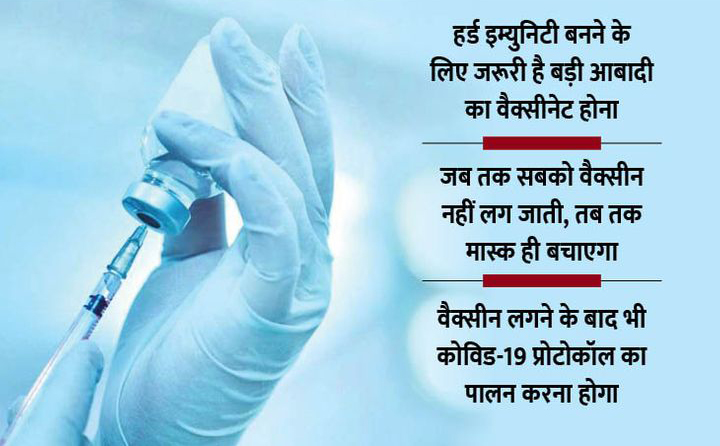 • जब तक पूरा देश वैक्सीनेट नहीं हो जाता और हर्ड इम्युनिटी विकसित नहीं होती, तब तक मास्क और सोशल डिस्टेंसिंग जैसे नियमों का पालन करना होगा। अब तक कोरोना से इसने ही बचाया है और आगे भी यह ही बचाएंगे।