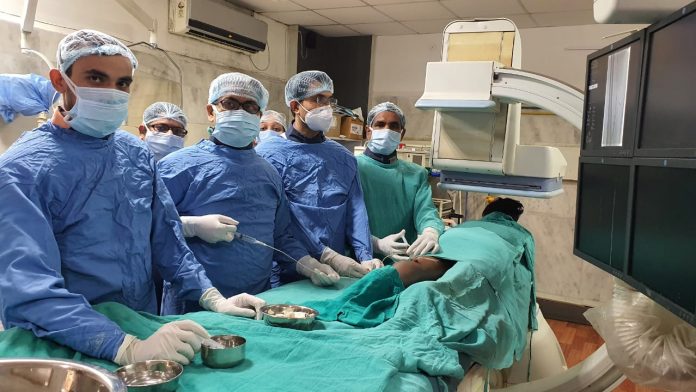 रेडियोलॉजी विभागाध्यक्ष प्रो. डॉ. एस. बी. एस. नेताम के कुशल नेतृत्व में प्रो. डॉ. विवेक पात्रे के साथ डॉ. मनोज एवं डॉ. दिनेश । साथ ही एनेस्थेसिया विभागाध्यक्ष प्रो. डॉ. के. के. सहारे के साथ डॉ. अशोक सिंह सिदार एवं डॉ. अंकिता, इस इंटरवेंशन प्रोसीजर में शामिल रहे।